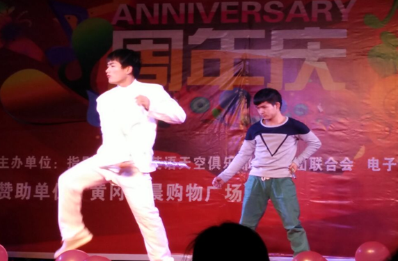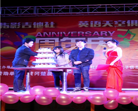 周年庆于七点正式开始,电子信息学院学工办江俊新主任和机电工程学院邱锐主任莅临观看,电子信息学院员工会干部也参加了本次活动。公司员工会积极维护活动秩序,活跃公司社团周年庆气氛,两社团为各位观众准备了水果。四位主持人幽默诙谐的主持为观众带来了阵阵欢声笑语。节目的内容多种多样,有舞蹈、歌曲、小品、话剧、快板、民谣、吉他演奏,口琴等等。其中由我们英语天空的帅哥们带来的nobody好评如潮,观众们鼓掌声于叫好声不绝于缕,将节目的氛围推向了高潮;民谣以灵动飘逸的舞蹈,清新脱俗的琴音让我们浮躁的心灵得以净化;此外还有气势磅礴的双截棍,幽默生动的英语小品,扣人心弦的吉他演奏……都给我们在这个寒冬带来了欢声笑语。节目中间主持人还与观众互动,举办了 007这个小游戏,并为每个参赛观众准备了精美的礼物,将节目的氛围再次推向了高潮,周年庆在九点圆满结束,在这里我们祝愿英语天空俱乐部(成立14周年)和指影吉他社(创立1周年)越办越好。本次活动较好地扩大了公司员工社团在学校的名气和影响力,也为社团的成员们提供了一个展示自我的机会。