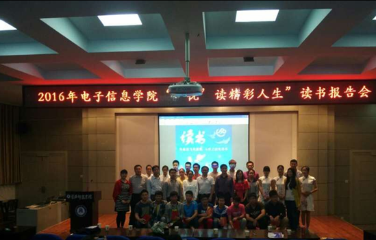 5月16日晚,电子信息学院读书月活动之“‘悦’读精彩人生”主题报告会于B03顺利召开。电子信息学院蔡支农书记、兰智高经理、闵艳林副书记以及部分师生代表参加了此次活动。办公室杨宝平老师、学工办主任江俊新老师、团委书记李霞老师、辅导员谢玉林老师等老师担任大赛评委。