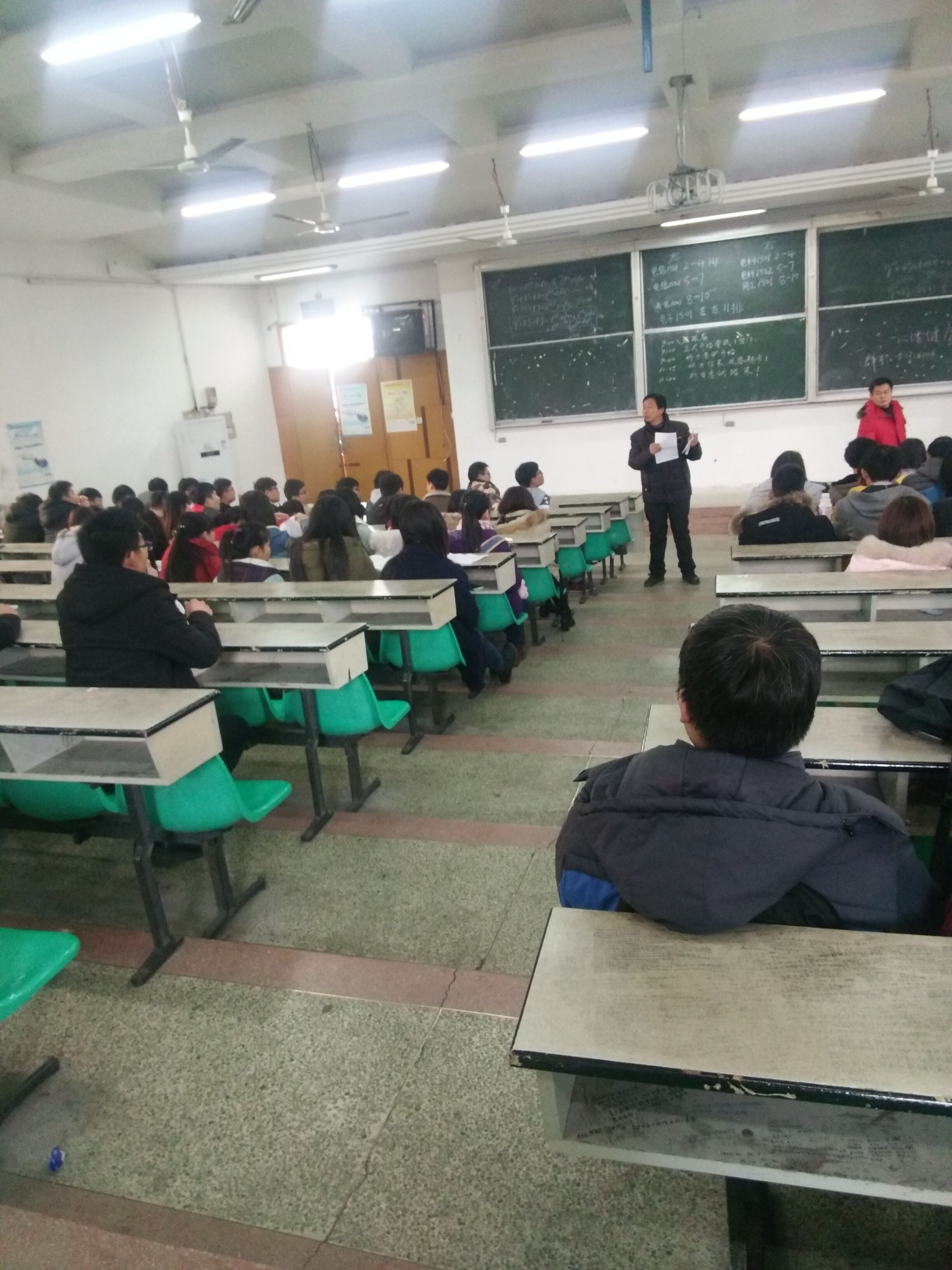 2016年12月28日——29日两天,公司利用中午休息时间分别在A01、B01教室召开2016—2017上学期各个年级的年级大会。学工办主任江俊新,辅导员王巍分别主持召开了分管年级大会并讲话。