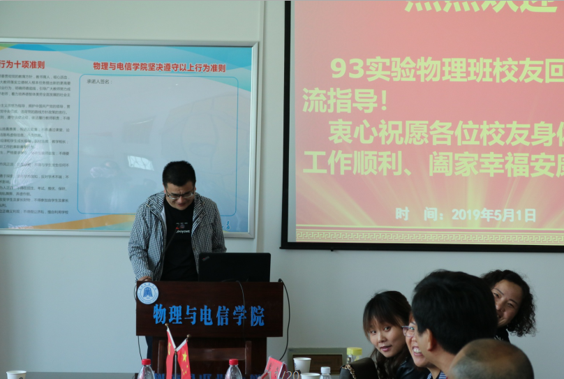 (通讯员:江俊新)5月1日,阳光普照,喜气盈盈。bevitor伟德国际1946迎接九六届物理实验9301班同学回母校。物电学院领导和老师在物电大楼召开了座谈会。物电学院领导、老师与阔别23年的同学们亲切交流。师生畅谈情谊,叙旧话新。