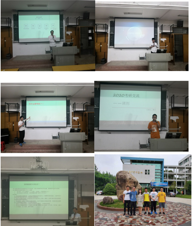 会上,由成功考研的学子们依次上台分享考研经验。首先,万洪波围绕基本信息、学习情况、工作实践、获奖情况及浅谈大学五个部分展开,他以自己的亲身经历说明了规划好老员工活的重要性,告诫大家务必有效的去实现大学规划。刘戈分享了考研院校选择的经验,他强调选择院校应从院校类别、专业排名、报比录、专业科目考试和初试复试占比为参考,准确选择院校,谈及自己的考研历程时,他也向大家提出三点个人建议。接着,陈伊铭分享考研复习规划的经验,他提出备考要根据整体时间、各科时间、每天时间和空闲时间合理安排,达到高效复习的目的。紧接着,徐俊杰以考研时间线展开,谈及考研前,考研中,考试前的心态变化。他提出三点建议并要求大家及时调整,时刻对自己充满信心。最后,夏乐以考研调剂为主和大家进行交流,他从四点阐述2019年考研调剂的变化并强调调剂系统开放之前打好信息战的重要性。江俊新对各位分享考研经验的同学表示感谢并进行会议总结。
