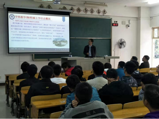 10月17日下午,学院执行经理兰智高教授一行四人到湖北科技学院电子与信息工程学院开展研究生招生宣传。本次宣讲得到了湖北科技学院电子与信息工程学院副经理熊钢教授的大力支持,学院部分骨干教师及物理学专业员工参加了宣讲会。