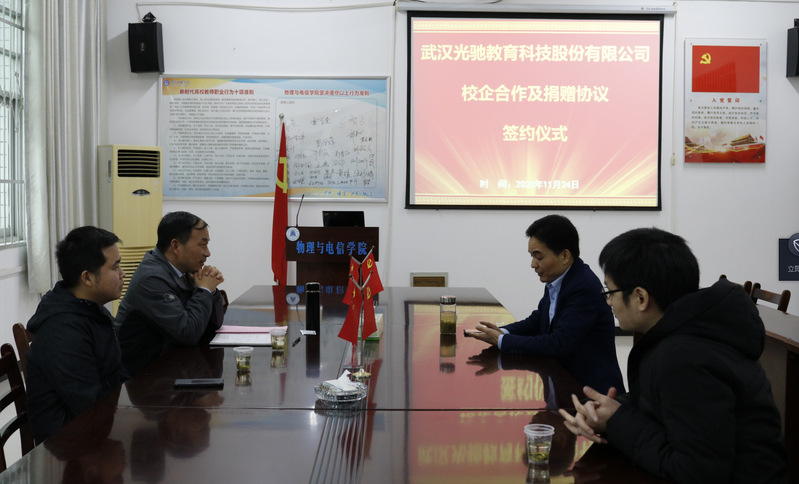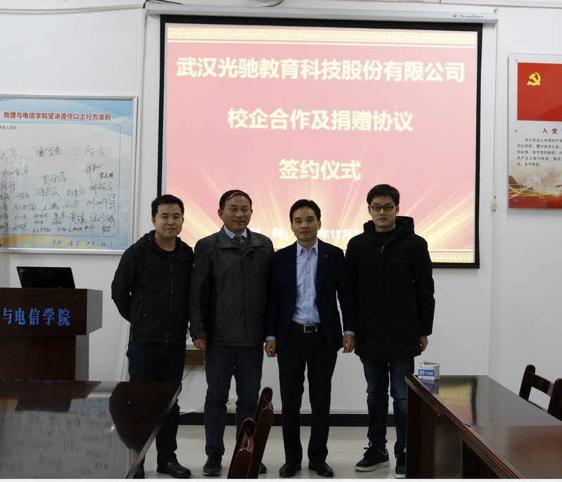 11月24日,武汉光驰教育科技股份有限公司与公司签订实习实训基地建设协议书及捐赠仪式在物电楼205会议室举行,该公司总经理李小红出席了此次活动。