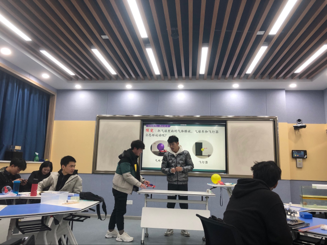 在本场比赛中李中豪同学通过声、光、电结合,将音叉振动波形,直观地察呈现在人们面前,令人耳目一新;田博雅同学设计的实验,让大家用肉眼直接观察到光的折射现象,效果良好,郝奎同学通过观察气球反冲实验的过程,引发同学们的思考,胡颖同学巧妙利用光的全反射,让同学们观察到了美丽的光,获得了评委们的一致好评。