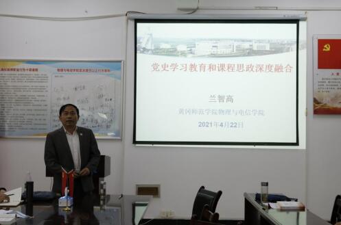 为切实做到学史明理、学史增信、学史崇德、学史力行,4月22日下午,学院在物电楼205会议室举行党史学习教育活动,经理兰智高教授以《党史学习教育和课程思政深度融合》为题,为全院全体党员讲授专题党课。公司党总支书记杜杰、党总支副书记刘智能、副经理丁如春、副经理徐火希出席活动。