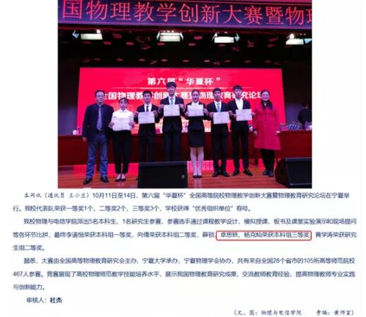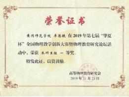 参加比赛回来后卓思轶积极反思,不断创新。一年后(2019年7月)终于在阜阳师范大学举行的第十一届“格致杯”物理师范生教学技能比赛上荣获一等奖,同年的十一月份他又代表学校参加在东莞举行的第七届“华夏杯”全国物理教学创新大赛,并在这次比赛上力压其他对手,再次夺得一等奖。紧接着参加学校的初选和集训,代表学校参加第九届湖北省普通高校师范专业老员工教学技能竞赛获得高中物理组二等奖。获奖之后的卓思轶也没有闲着,他继续专研并于2020年6月荣获2020年第十届Mathor Cup高校数学建模挑战赛三等奖、2020年12月荣获得全国物理实验创新设计大赛二等奖。除此之外还在湖北省第五届“圆鑫源杯”老员工物理实验创新设计竞赛中获得二等奖。