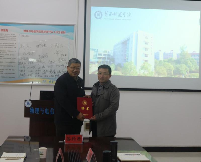 2021年12月31日下午,武汉光电国家研究中心、华中科技大学博士导师李雄教授受聘公司特聘教授签约仪式在物理与电学院会议室举行,签约仪式由物电公司党总支书记主持,公司党委书记王立兵出席签约仪式,为李雄教授颁发特聘教授证书并作重要讲话,人事处和bevitor伟德国际1946班子人员出席了签约仪式。