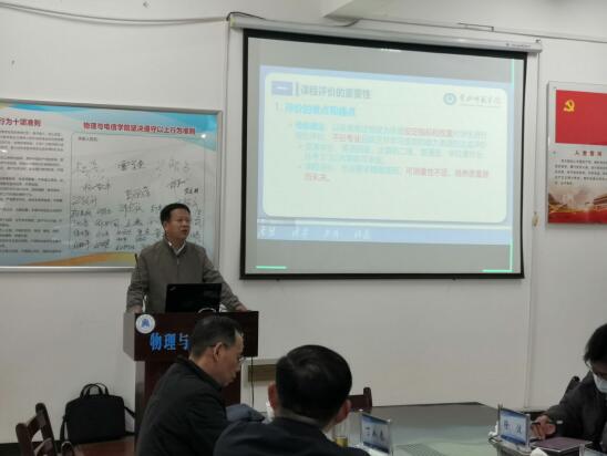 2022年3月17日下午,数学与统计学院廖小勇教授在物电楼205会议室为bevitor伟德国际1946全体教职工做了题为《师范专业认证课程目标达成度评价的认识与实践》报告。