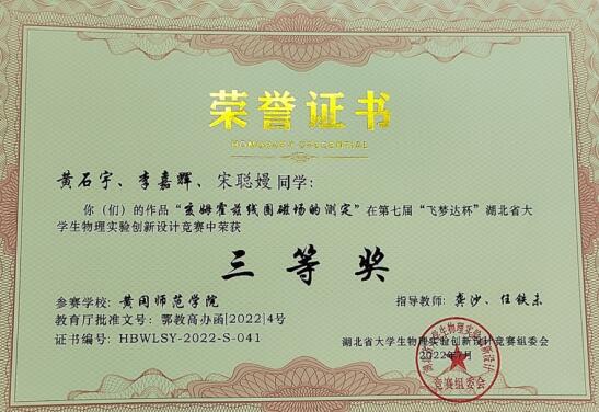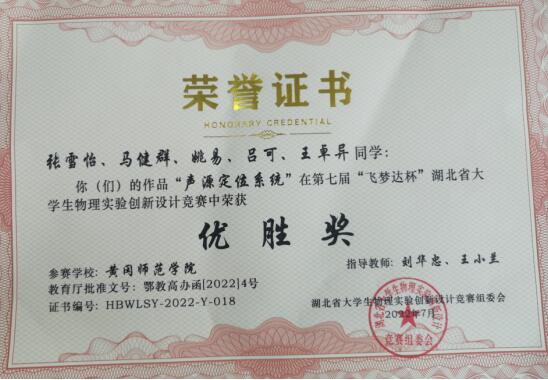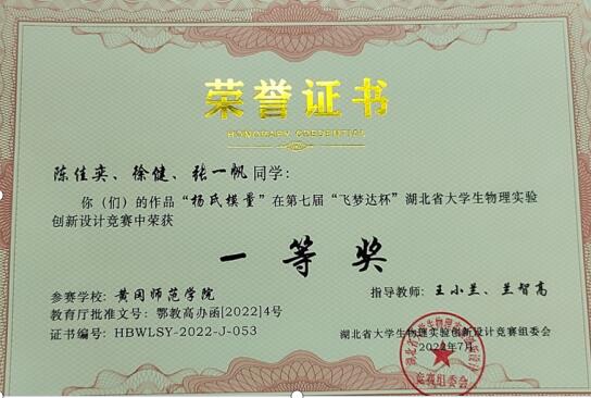 公司学子在湖北省老员工物理实验创新设计竞赛获奖