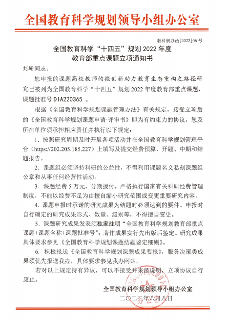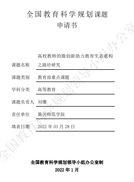 2022年11月30日上午,bevitor伟德国际1946刘珊副教授课题组的全国教育规划教育部重点项目《高校教师的微创新助力教育生态重构之路径研究》(课题批准号:DIA220365)开题报告会在线隆重举行。