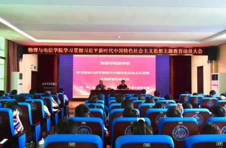 4月19日下午2点,物电学院在致远楼三楼会议室召开学习贯彻习近平新时代中国特色社会主义思想主题教育动员大会,公司党委书记杜杰支持会议并作动员讲话,公司党委第六督导组组长余晚霞到会指导并讲话。