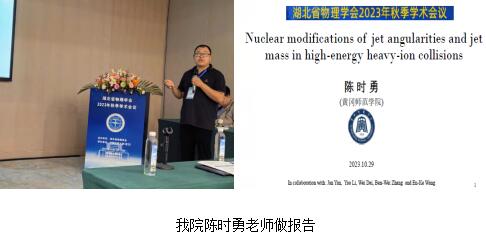 本次会议是湖北省物理学会迄今为止举办的范围最广,规模最大的物理学盛会。大会设有五个分会场,就理论与计算物理、凝聚态物理、原子与分子物理、粒子物理与核物理、物理教学与科普等主题开展交流报告130个,接收投稿会议论文156篇。会议期间,与会者们就前沿研究、团队建设、物理教学和社会科普等热点问题进行了深入的讨论和交流,分享了最新的研究成果和学术观点。通过这次学术盛会,促进了物理学界的合作交流,推动了湖北省物理学科的科学研究和教育的融合发展,传递了创新求实、拼搏奋进、苦干实干、善做善成的科研精神。公司陈时勇老师在粒子物理与核物理分会做了题为“Nuclear modifications of jet angularities and jet mass in high-energy heavy-ion collisions”的邀请报告。