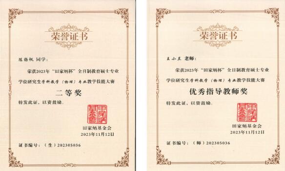 公司学子在2023年全国“田家炳杯”全日制教育硕士专业学位研究生学科教学(物理)专业教学技能大赛决赛中再创佳绩
