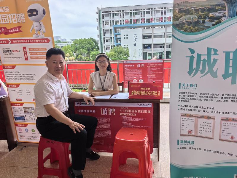 本次招聘会汇聚了深圳沃特检验技术有限公司、长飞石英技术(武汉)有限公司、湖北省珍岛数字智能科技有限公司、湖北铭普光通科技有限公司、武汉嘉仪通科技有限公司、武汉光驰教育科技股份有限公司、长城汽车股份有限公司大冶分公司、黄商集团、武汉九云快集科技有限公司、武汉市江岸区致远学校等十余家单位和企业,为员工提供了丰富的就业机会和实习岗位。