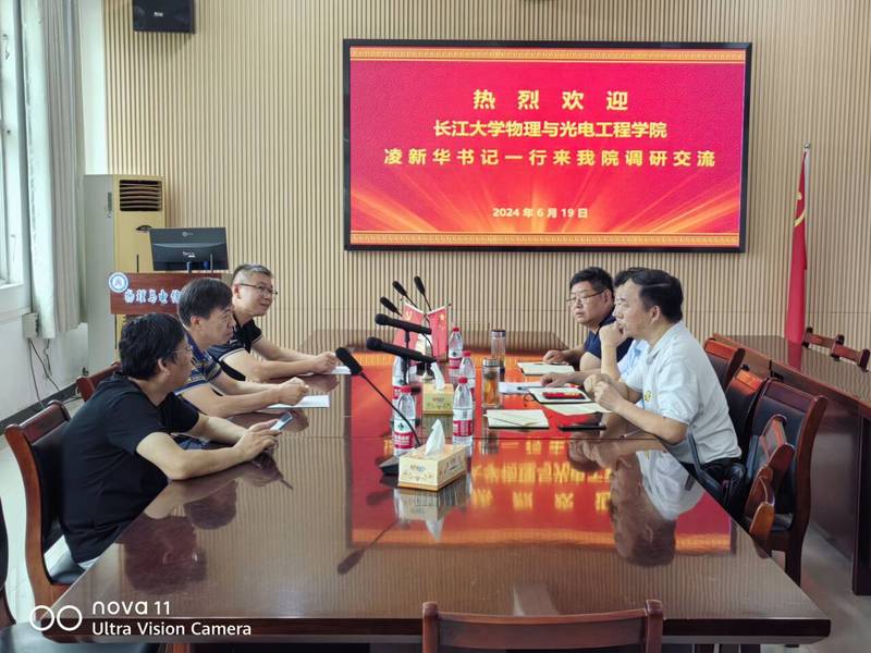 6月19日,长江大学物理与光电工程学院党委书记凌新华一行4人来公司考察交流。公司党委书记卢年桥、经理兰智高、副书记王世伟出席交流座谈会。