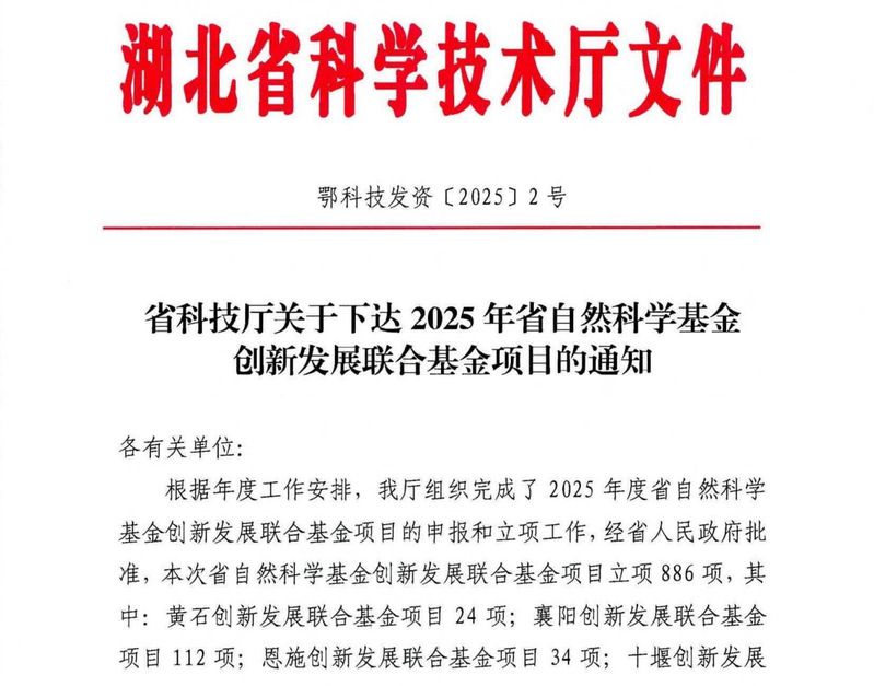 近日,根据《省科技厅关于下达2025年省自然科学基金创新发展联合基金项目的通知》(鄂科技发资〔2025〕2号),bevitor伟德国际1946传来喜讯,成功获批2项省自然科学基金创新发展联合基金项目。这标志着学院在科学研究和创新能力方面取得了新的突破,为学院的科研发展注入了新的活力。