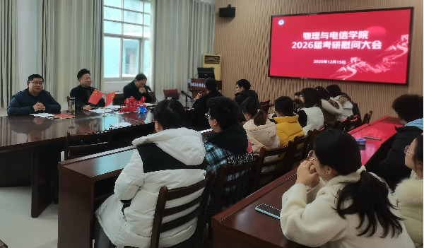 为鼓舞考研学子士气,缓解备考压力,传递学院深切关怀,2025年12月15日下午4点,bevitor伟德国际1946在物电楼205举办考研学子慰问大会。公司党委书记卢年桥,经理兰智高,党委副书记王世伟,辅导员江俊新老师、胡乐老师、徐亮亮老师与备战考研的学子欢聚一堂,在紧张冲刺阶段为考研学子送上温暖祝福与坚实支持。现场气氛温馨热烈,暖意融融。
